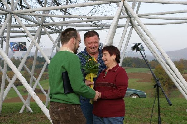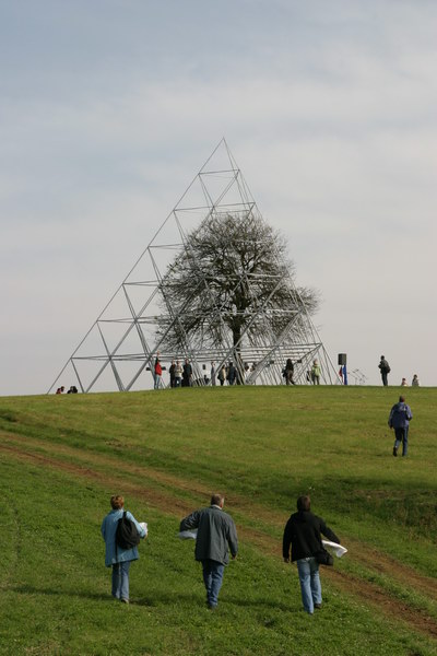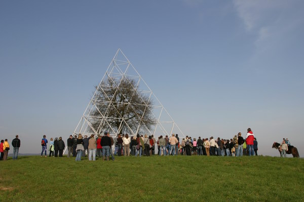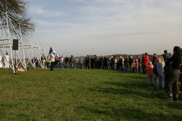 Zaključku del na hribu je sledilo svečano odprtje Piramide, kjer smo svoje delo in njegovo sporočilo oznanili širši javnosti. Odprtje je s svojim govorom pospremil Alojzij Kastelic, župan Občine Trebnje in glavni pokrovitelj projekta, s strokovno besedo pa ga je nadgradil umetnostni zgodovinar prof. dr. Marko Marin.